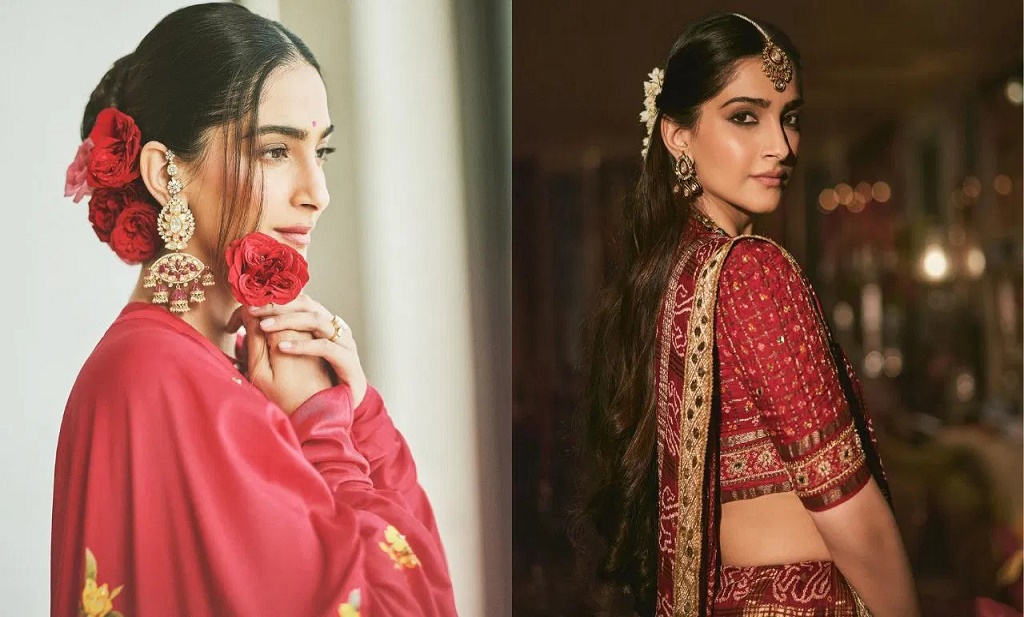 साड़ी और सूट दोनों के साथ ही सोनम कपूर का ये हेयरस्टाइल परफेक्ट लगेगा. उन्होंने हाफ अप टू हेयर स्टाइल किया है. जिसमें आगे से कुछ बाल लेकर उन्हें पीछे की तरफ टाइ कर गजरा लगाया है. इस तरह का हेयर स्टाइल घर पर करना बहुत आसान है. साड़ी या सूट दोनों के साथ ही हाफ अप टू हेयर स्टाइल परफेक्ट लगेगा.